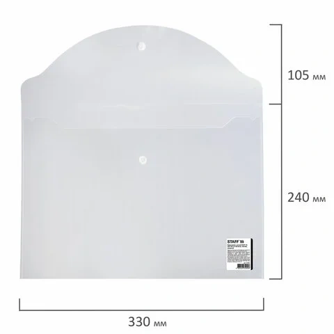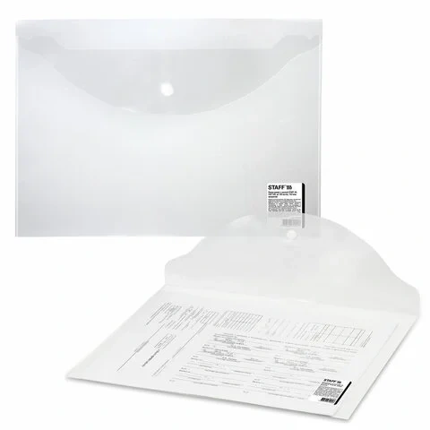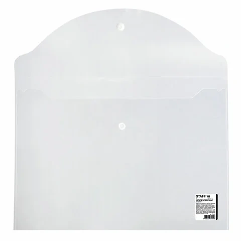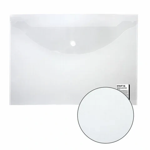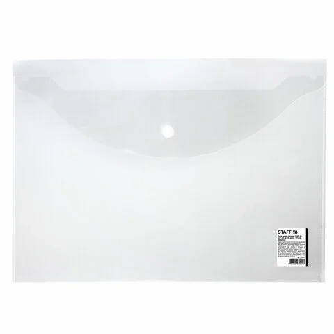 Папка-конверт с кнопкой STAFF, А4, до 100 листов, прозрачная, 0,15 мм, 270467, 120мкм