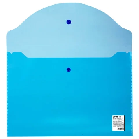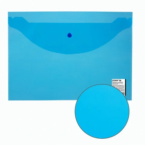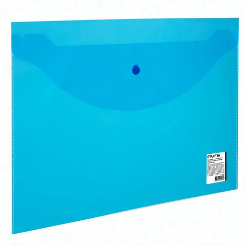 Папка-конверт с кнопкой STAFF, А4, до 100 листов, прозрачная, синяя, 0,15 мм, 270470, 120мкм