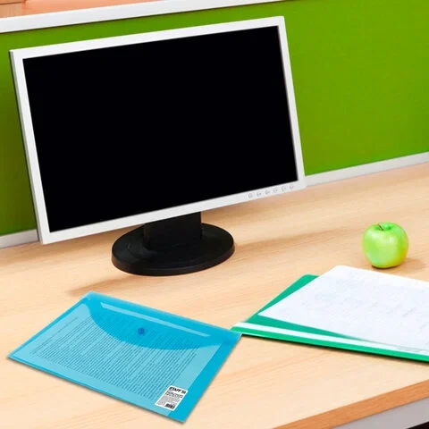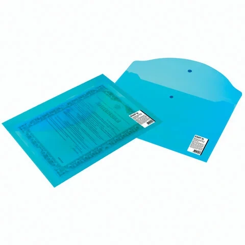 Папка-конверт с гладкой фактурой формата А4 (330х240 мм) из плотного прозрачного пластика толщиной 150 мкм. Закрывается на защелку-кнопку, что способствует удобству при частом использовании и обеспечивает быстрый доступ к бумагам. Вместительность до 100 листов поможет хранить большое количество документов в одном месте или взять все необходимое с собой. Папка-конверт выполнена в прозрачном синем цвете.