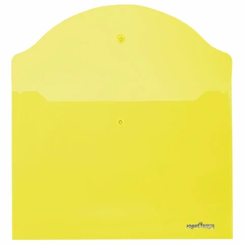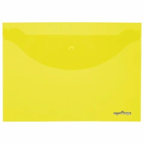 Папка-конверт с кнопкой ЮНЛАНДИЯ, А4, до 100 листов, прозрачная, желтая, 0,18 мм, 228668