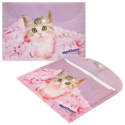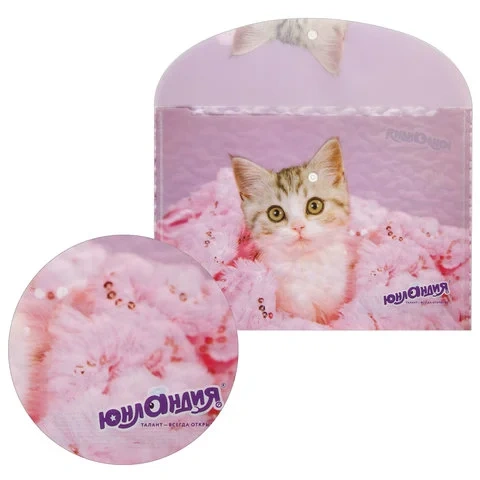 Папка-конверт с кнопкой ЮНЛАНДИЯ 'Котенок', А4, 160 мкм, до 100 листов, цветная печать, 228049