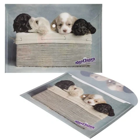 Папка-конверт с кнопкой ЮНЛАНДИЯ 'Щенки', А4, 160 мкм, до 100 листов, цветная печать, 228050