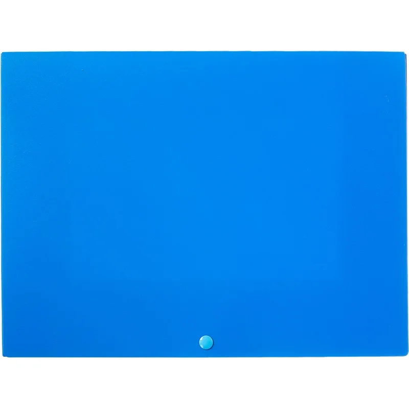 Папка-короб Attache формата А4 закрывается с помощью кнопки. Изготовлена из пластика толщиной 0.5 мм синего цвета. Удобна для переноски документов, предотвращает их смятие и загрязнение. Вместимость 100 листов бумаги А4.