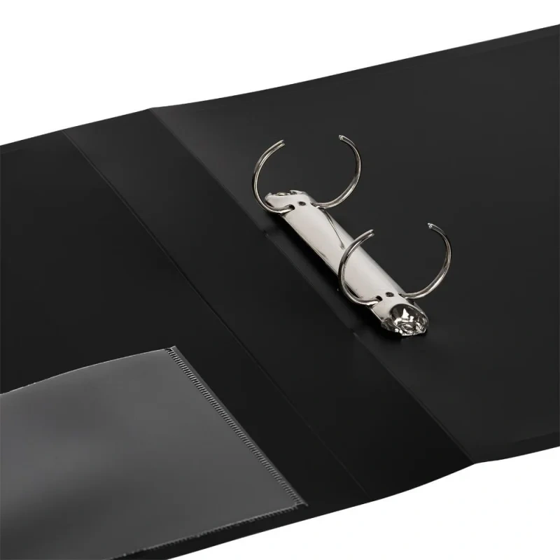 Папка на кольцах рекомендуются как для временного, так и длительного хранения, систематизации, архивирования документов. Такие папки используются в работе офисными сотрудниками различных специальностей, направлений, должностей. Можно использовать для домашних документов.Папка на двух кольцах Attache изготовлена из пластика толщиной 0,7 мм черного цвета. Формат А4. Снабжена механизмом на двух O-кольцах. Диаметр кольца — 35 мм. На внутренней стороне обложки есть прозрачный карман для документов. Корешок шириной 42 мм имеет карман для сменной этикетки. Папка на кольцах вмещает до 250 листов стандартной плотности.