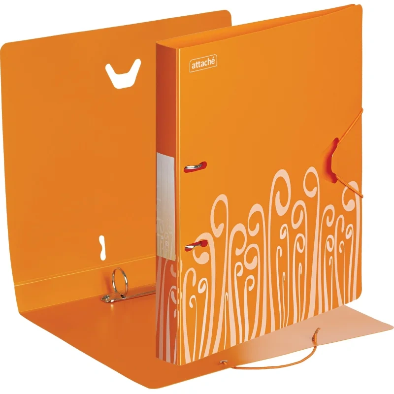 Папка на кольцах рекомендуются как для временного, так и длительного хранения, систематизации, архивирования документов. Такие папки используются в работе офисными сотрудниками различных специальностей, направлений, должностей. Можно использовать для домашних документов. Папка на двух кольцах Attache Fantasy изготовлена из высококачественного пластика оранжевого цвета. Формат А4, оригинальный стильный дизайн. Надежно закрывается на резинку. Прорези на внешней крышке папки удерживают ее закрытой даже при большом количестве документов. Ширина корешка составляет 35 мм, диаметр кольца - 30 мм. Папка на кольцах вмещает до 300 листов стандартной плотности.