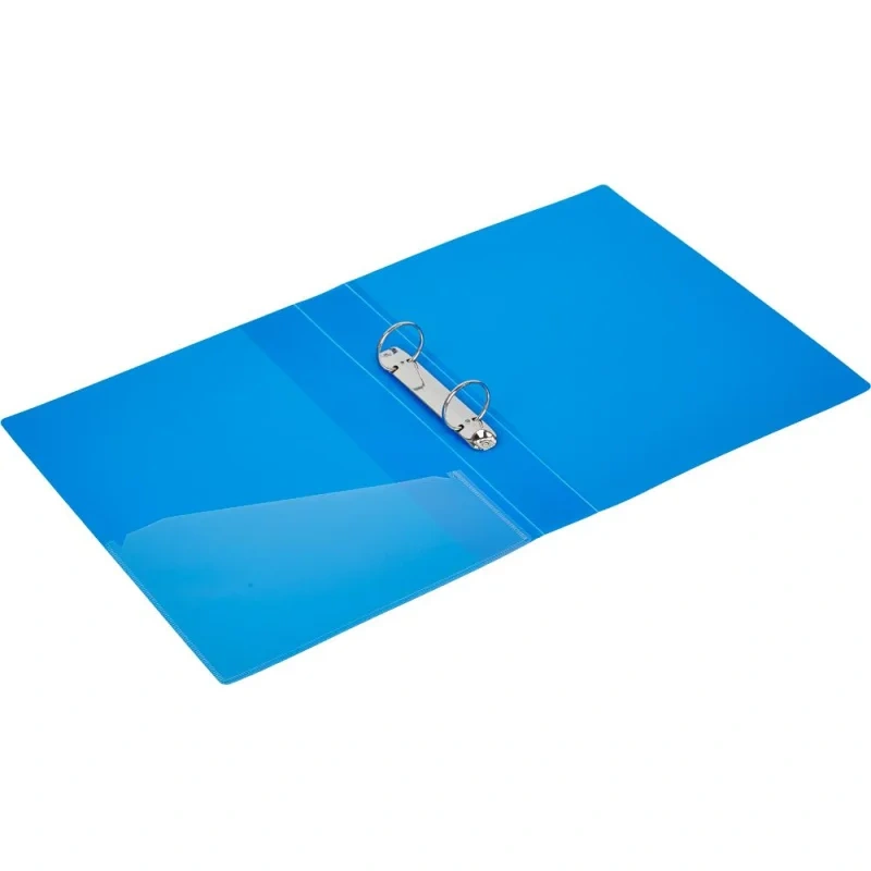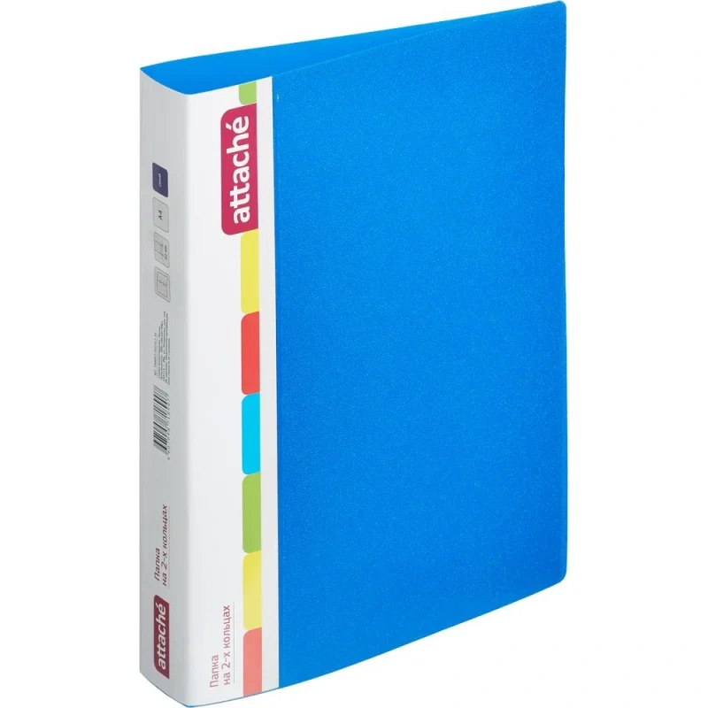 Папка на кольцах рекомендуются как для временного, так и длительного хранения, систематизации, архивирования документов. Такие папки используются в работе офисными сотрудниками различных специальностей, направлений, должностей. Можно использовать для домашних документов.Папка на двух кольцах Attache изготовлена из пластика толщиной 0,7 мм синего цвета. Формат А4. Снабжена механизмом на двух O-кольцах. Диаметр кольца — 35 мм. Крепление кольцевого механизма возможно на корешок папки или на внутреннюю обложку. На внутренней стороне обложки есть прозрачный карман для документов. Корешок шириной 42 мм имеет карман для сменной этикетки. Папка на кольцах вмещает до 250 листов стандартной плотности.