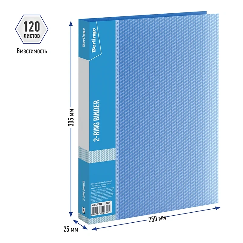 Папка на 2-х кольцах А4 Berlingo Diamond синяя, 25мм, ABp_22002
