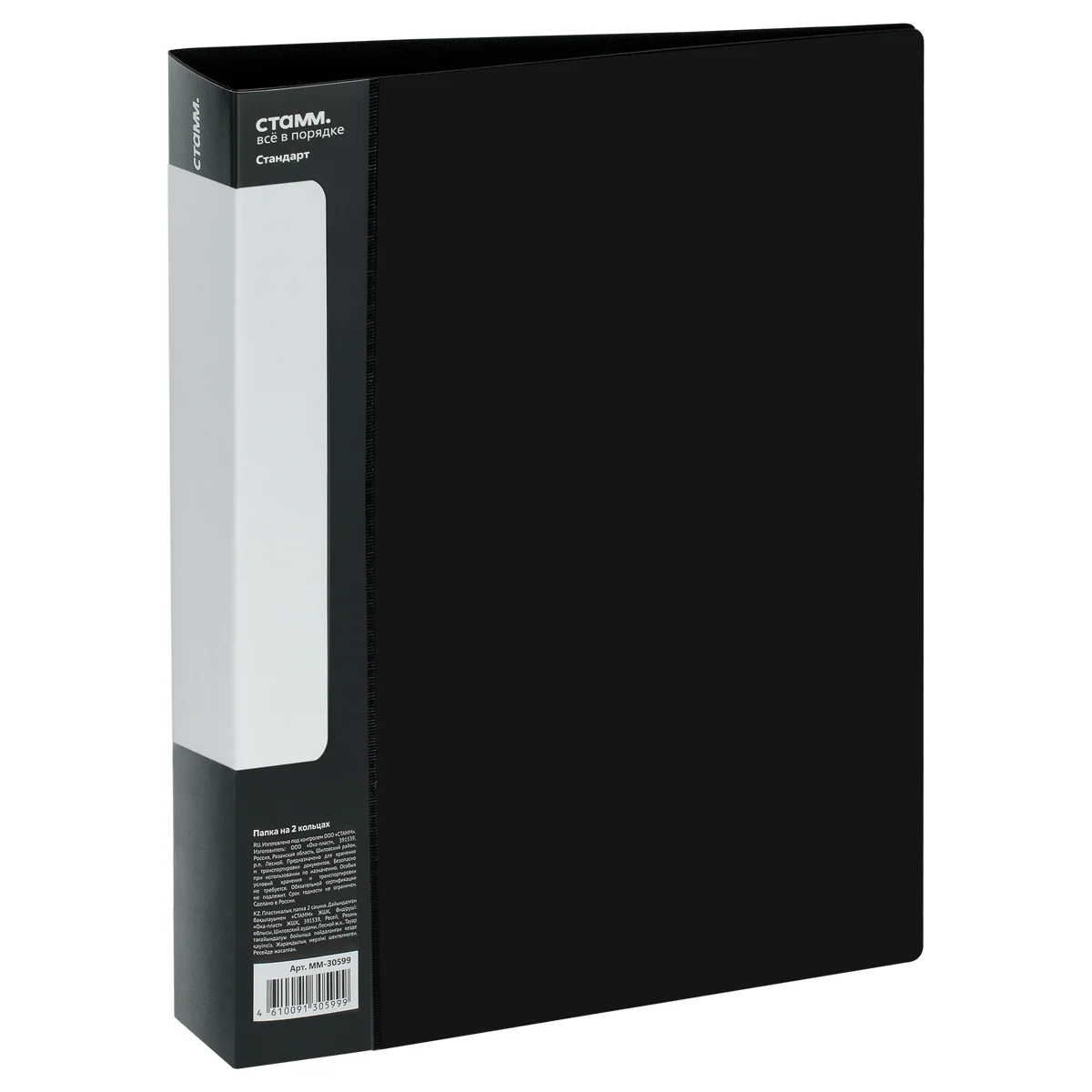 Пластиковый карман на корешке папки со сменным ярлычком. Вместимость 190 листов.