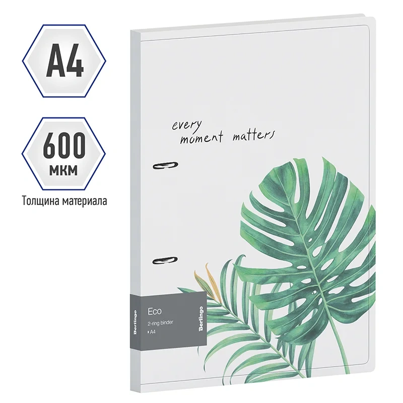 Папка на 2-х D-кольцах Berlingo серии Eco формата А4 - стильный аксессуар для офиса и учёбы с рисунком на белом фоне. Изготовлена из высококачественного полипропилена с матовой текстурой поверхности 'песок', на которой не видно отпечатков пальцев и мелких царапин. Внутренняя поверхность имеет белый цвет. Толщина обложки - 600 мкм. Ширина корешка составляет 24 мм. Специальная D-форма колец диаметром 20 мм помогает удобно и ровно хранить документы, которые могут быть выровнены по левому краю, благодаря боковой вертикальной стенке кольца. Вместимость папки – 150 листов. Специальные формовые отверстия в обложке служат для надежного защелкивания папки в сложенном виде, предотвращают случайное открытие обложки и замятие документов внутри при хранении и транспортировке. На внутренней стороне обложки папка оснащена плотным прозрачным карманом для удобного хранения мелочей: ручки, заметок, визиток, дисков, флешек и др. Размер папки составляет 310*233*24 мм. Упакована в индивидуальный прозрачный пакет по форме.