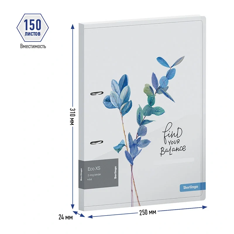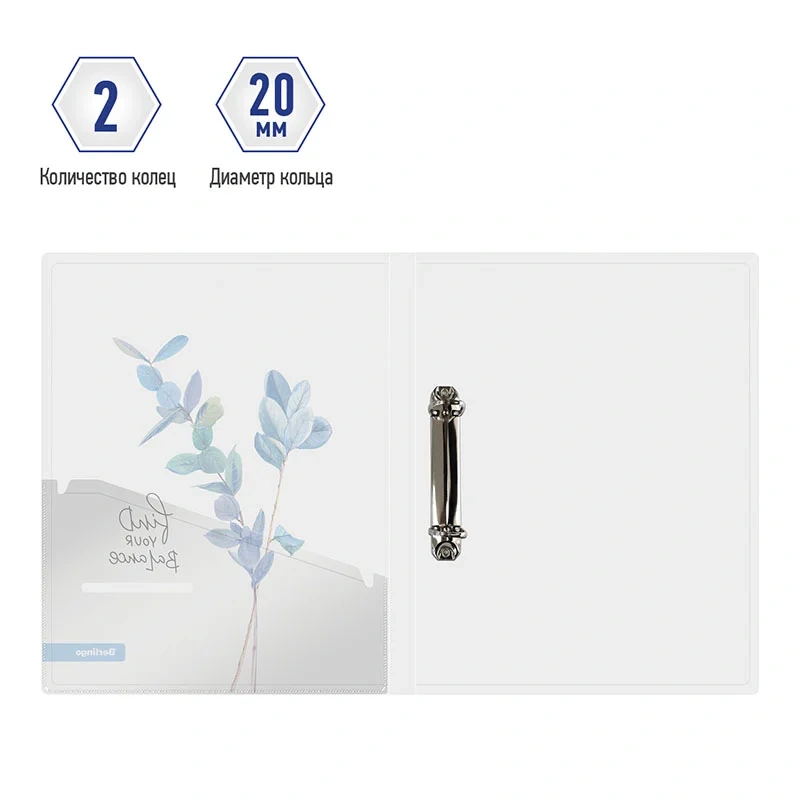 Папка пластиковая на 2 D-кольцах Berlingo 'Eco XS' формата А4 с прозрачной обложкой с рисунком. Специальная D форма колец помогает удобно и ровно хранить документы, которые могут быть выровнены по левому краю, благодаря боковой вертикальной стенке кольца. Диаметр колец 20мм. Специальные формовые отверстия в обложке служат для надежного защелкивания папки в сложенном виде, предотвращают случайное открытие обложки и замятие документов внутри при хранении и транспортировке. Изготовлена из высококачественного полипропилена с матовой текстурой поверхности 'песок', на которой не видно отпечатков пальцев и мелких царапин. Предназначена для хранения документов. Толщина обложки 600мкм. На внутренней стороне обложки оснащена плотным прозрачным карманом для удобного хранения мелочей: ручки, заметок, визиток, дисков, флешек и др. Папка вмещает до 150 листов. Упакована в индивидуальный прозрачный пакет по форме.