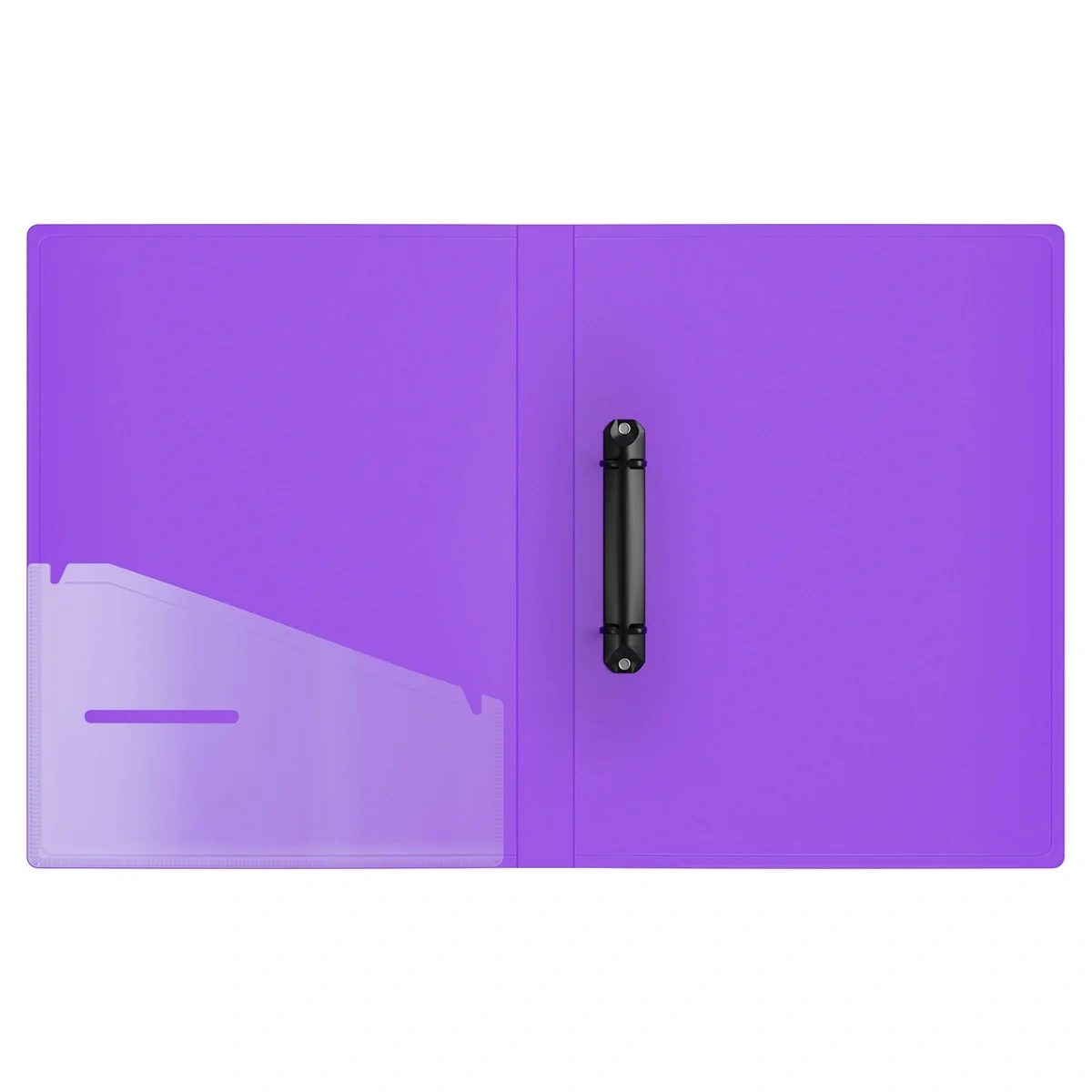 Папка на 2 кольцах Berlingo серии Envy формата А4 (310*250*24 мм) - отличный и стильный помощник для хранения документов с плотной обложкой и внешним карманом. Толщина обложки – 700 мкм. Цвет – полупрозрачный фиолетовый. Вместимость папки – 150 листов, ширина корешка – 24 мм. Папка изготовлена из высококачественного полипропилена с фактурой «песок», на которой не видно отпечатков пальцев и мелких царапин. На внешней стороне корешка располагается карман с бумажной вкладкой, для подписи содержимого и удобной сортировки документов в хранилище.