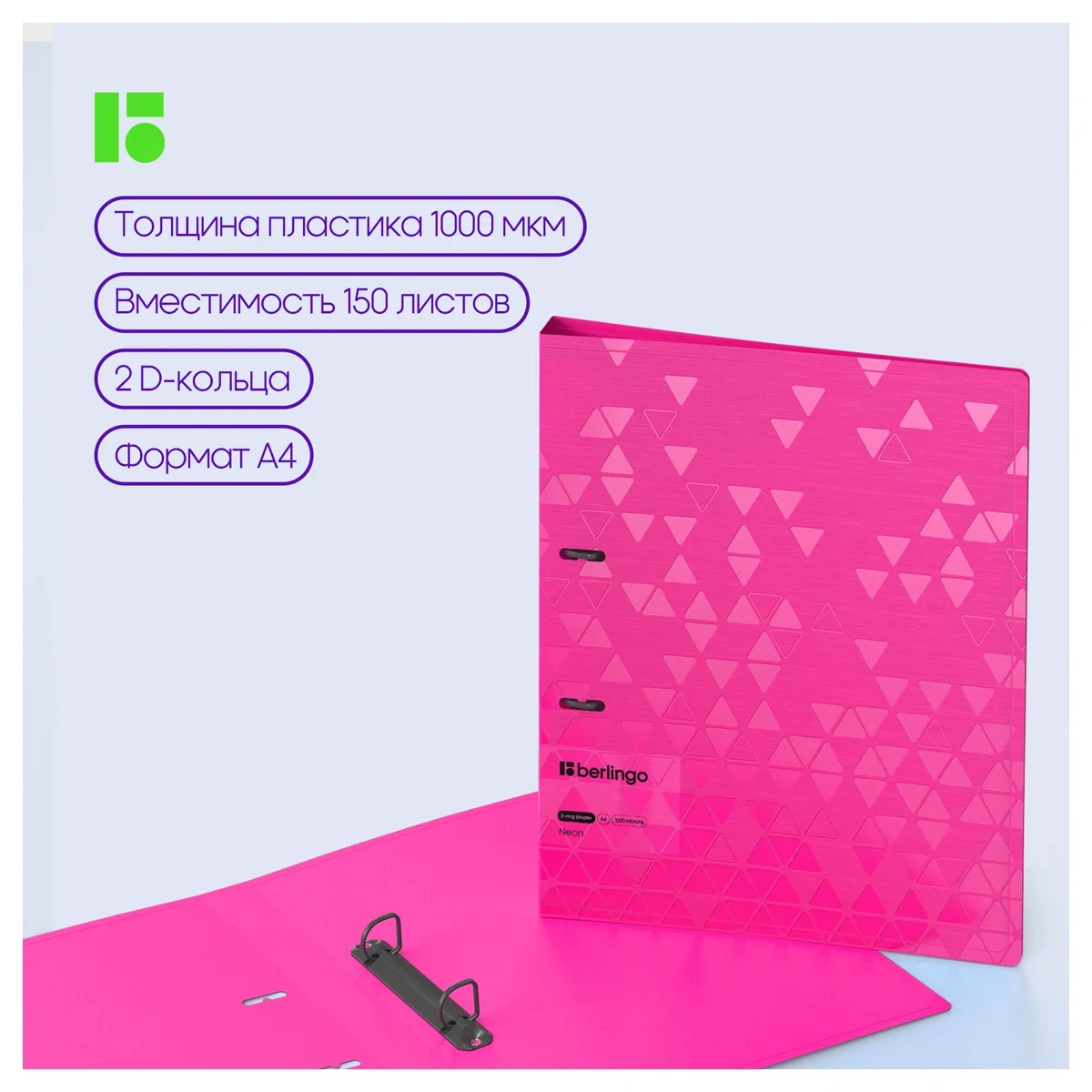 Папка на 2 кольцах Berlingo 'Neon', 24мм, 1000мкм, розовый неон, D-кольца, с внутр. карманом