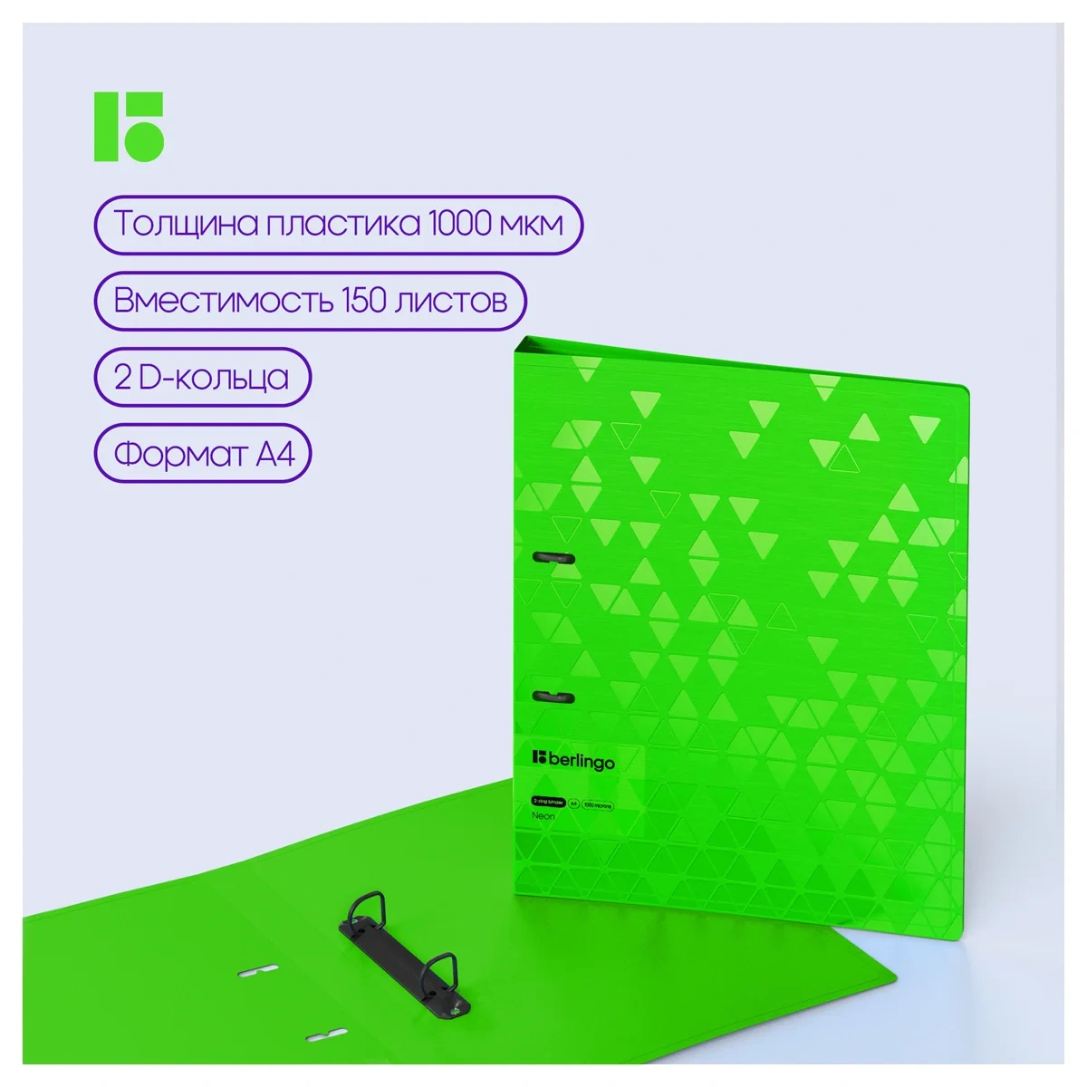 Папка на 2 кольцах Berlingo 'Neon', 24мм, 1000мкм, зеленый неон, D-кольца, с внутр. карманом