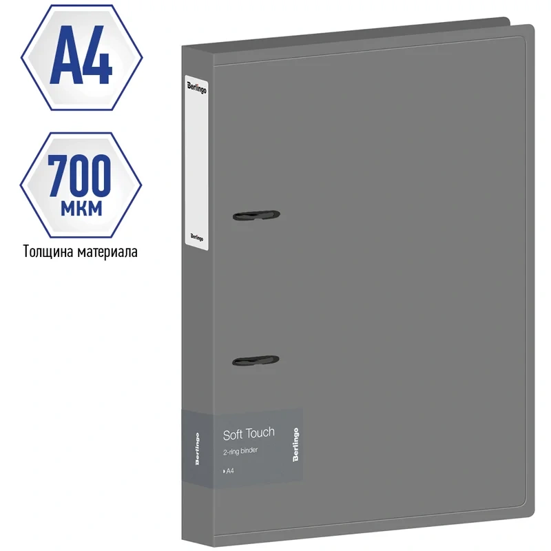 Папка на 2 кольцах Berlingo 'Soft Touch', 40мм, 700мкм, серая, D-кольца, с внутр. карманом