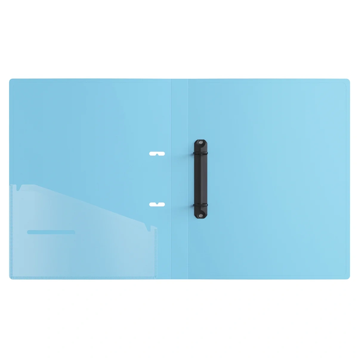 Папка на 2-х D-кольцах Berlingo серии Soft Touch Pro формата А4 - стильный аксессуар для офиса и учёбы. Уникальная технология производства обложки - глубокий эффект софт-тач, тактильно сравнимый с кожаной обложкой. Яркий синий цвет обложки и контрастный голубой цвет внутренней поверхности. Изготовлена из высококачественного полипропилена толщиной 700 мкм. Ширина корешка составляет 25 мм. Ширина папки составляет 250мм. Папка оснащена стильными черными кольцами, которые крепятся на заднюю стенку. Специальная D-форма колец диаметром 20 мм помогает удобно и ровно хранить документы, которые могут быть выровнены по левому краю, благодаря боковой вертикальной стенке кольца. Вместимость папки – 150 листов. Специальные формовые отверстия в обложке служат для надежного защелкивания папки в сложенном виде, предотвращают случайное открытие обложки и замятие документов внутри при хранении и транспортировке. На внутренней стороне обложки папка оснащена плотным прозрачным карманом для удобного хранения мелочей: ручки, заметок, визиток, дисков, флешек и др. Размер папки составляет 310*250*25 мм. Упакована в индивидуальный прозрачный пакет по форме. Папка оснащена съемным стикером c штрих-кодом.