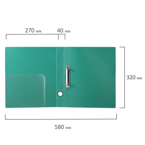 Папка на 2 кольцах BRAUBERG 'Стандарт', 40 мм, зеленая, до 300 листов, 0,9 мм, 270481