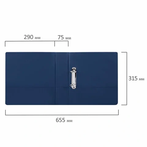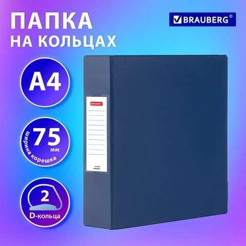 Папка на 2 кольцах, ПРОЧНАЯ, картон/ПВХ, BRAUBERG 'Office', СИНЯЯ, 75 мм, до 500 листов, 271845