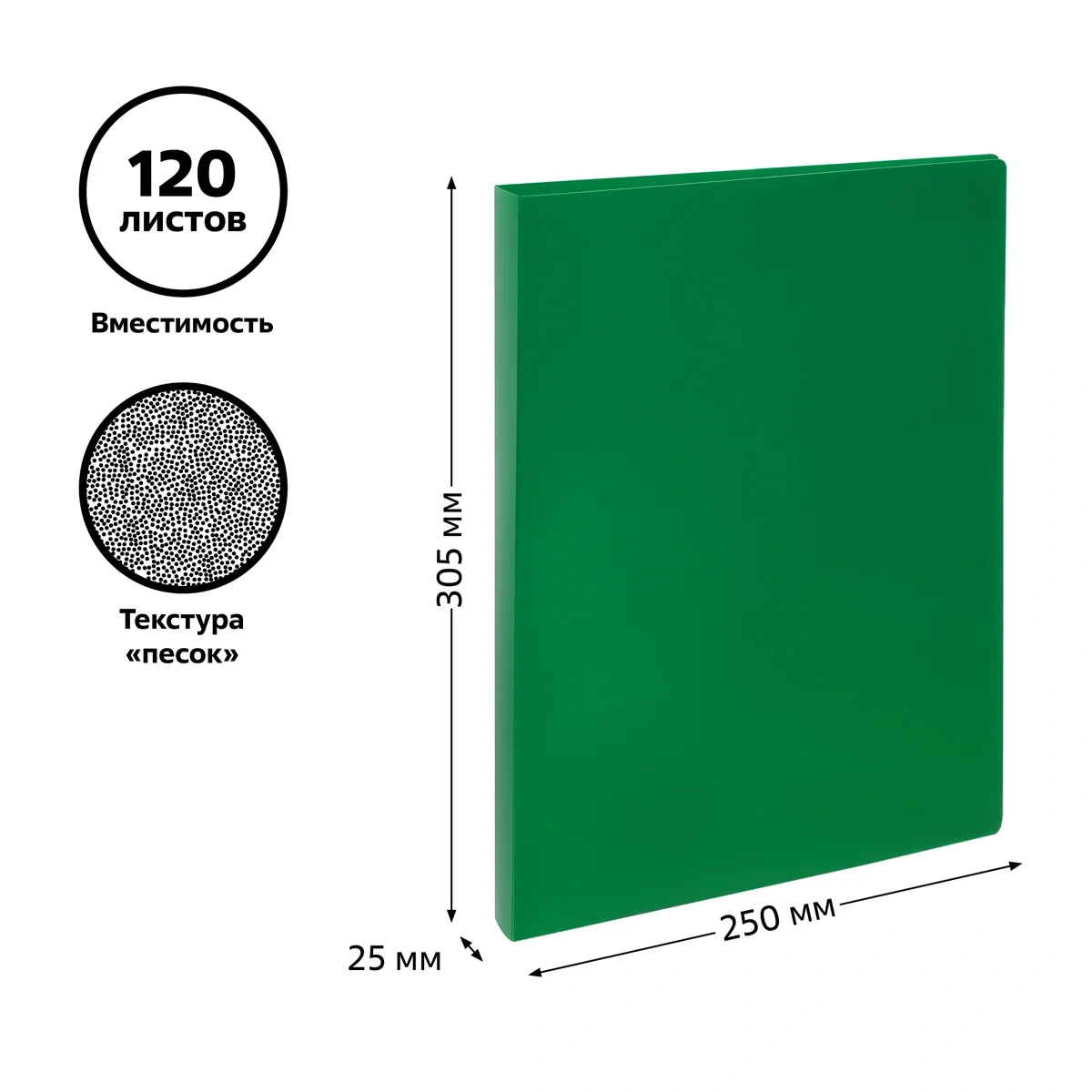 Папка на 2 кольцах СТАММ А4, 25мм, 500мкм, пластик, зеленая