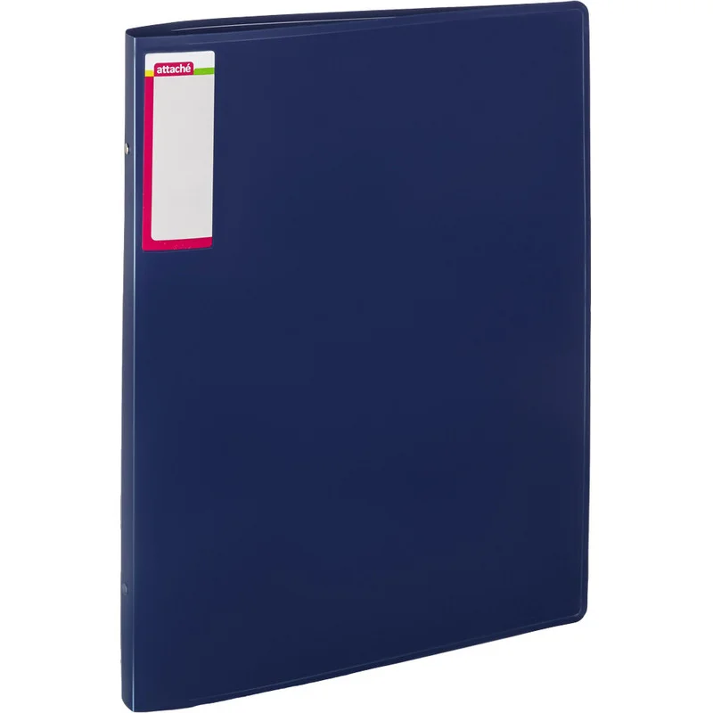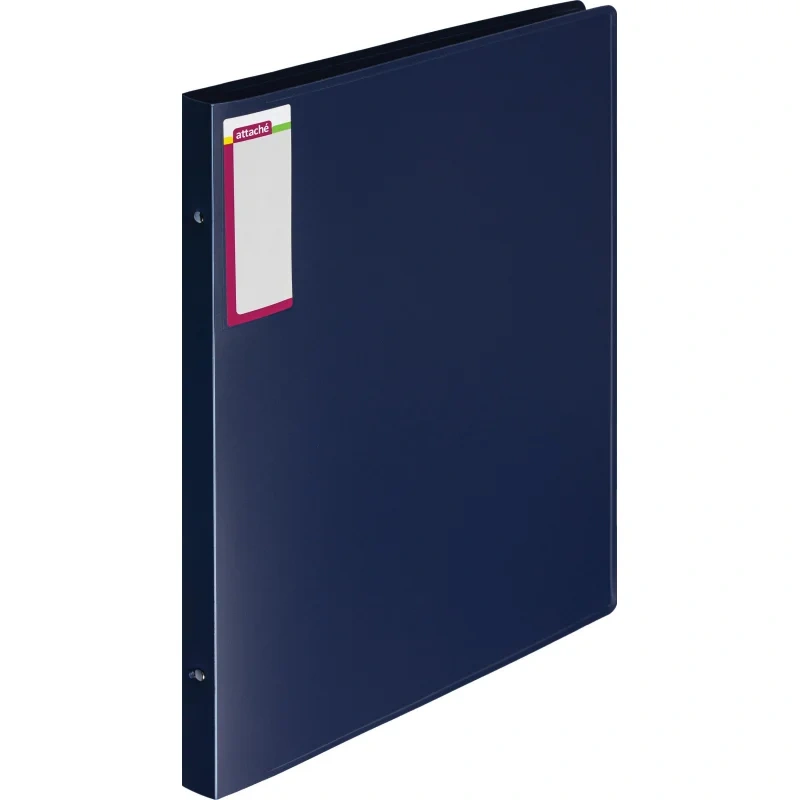Папки на кольцах рекомендуются как для временного, так и длительного хранения, систематизации, архивирования документов. Используются в работе офисными сотрудниками различных специальностей, направлений, должностей. Также их можно использовать для хранения документов дома. Папка на четырех кольцах Attache изготовлена из жесткого пластика толщиной 0,8 мм синего цвета. Формат А3, вертикальная. Снабжена механизмом на O-кольцах диаметром 25 мм. Ширина корешка составляет 32 мм. На обложке есть наклейка для маркировки. Папка на кольцах формата А3 вмещает до 200 листов стандартной плотности.