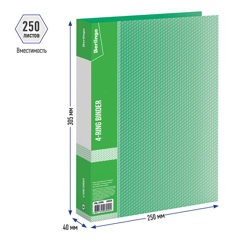 Папка на 4-х кольцах А4 Berlingo Diamond зеленая, А4, 40мм