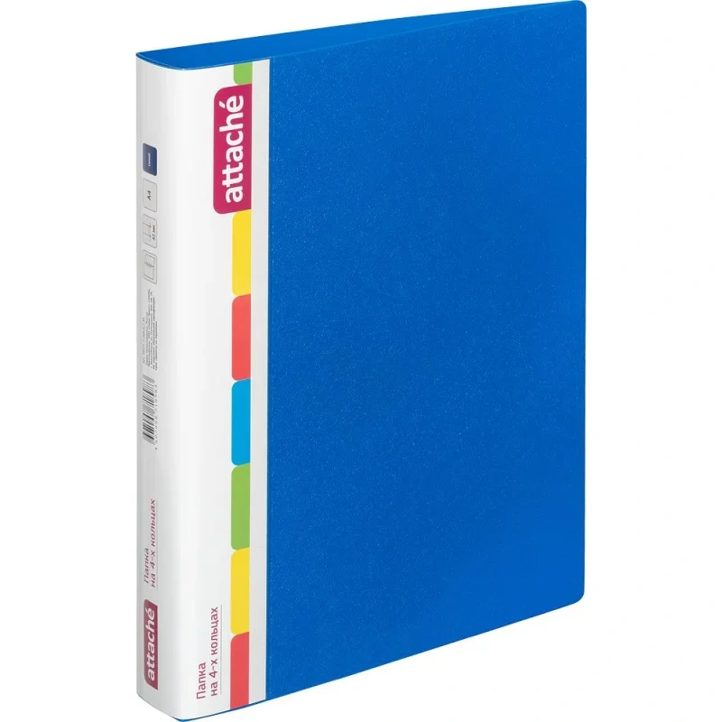 Папка на четырёх кольцах. Подходит для архивации документов формата А4. Изготовлена из ПВХ. На оборотной стороне обложки дополнительное место для записей. Корешок 35 мм.