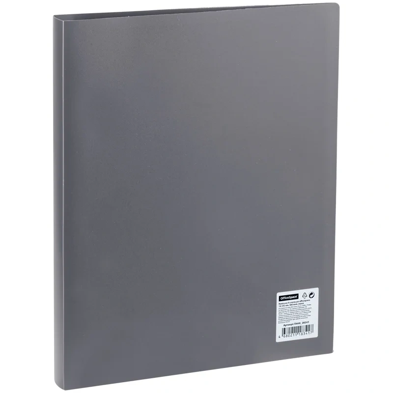 Папка на 4-х кольцах OfficeSpace, 25мм, 500мкм, серая, предназначена для длительного или временного хранения перфорированых документов формата А4, изготовлена из плотного пластика. Кольцевой механизм надежно держит документы. В ассортименте представлены классические офисные цвета. Допустима влажная обработка.