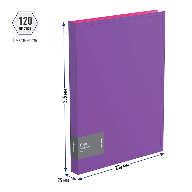 Папка на 4-х кольцах Berlingo 'Fuze', 25мм, 600мкм, фиолетовая