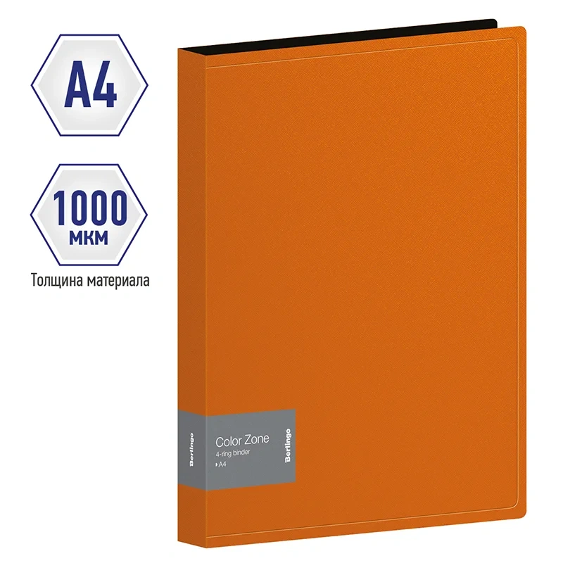 Папка на 4 кольцах Berlingo 'Color Zone', 35мм, 1000мкм, оранжевая