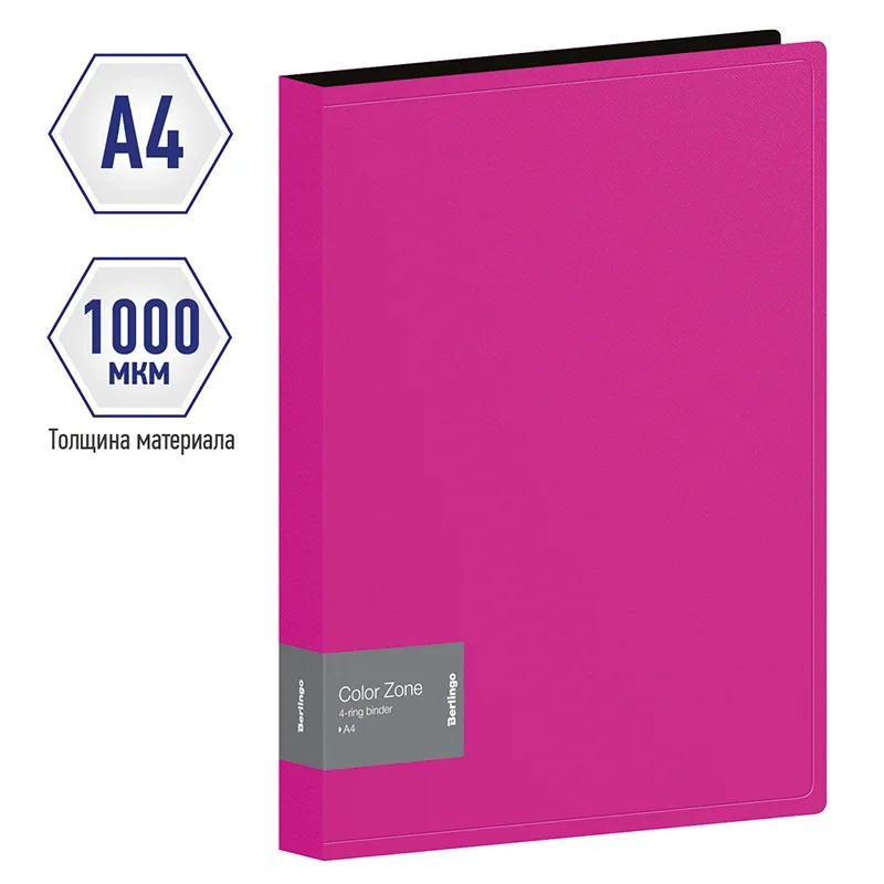 Папка на 4 кольцах Berlingo 'Color Zone', 35мм, 1000мкм, розовая