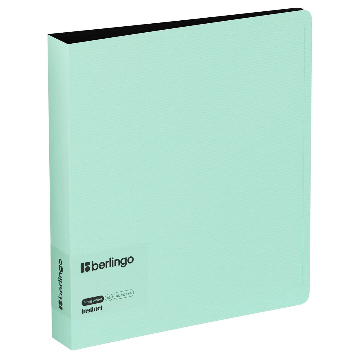 Папка на 4 кольцах Berlingo серии Instinct формата А5 — стильный аксессуар для офиса и учёбы. Плотная обложка отличается фактурой «горизонтальные линии». Толщина пластика — 700 мкм. Дизайн — сочетание контрастного пастельного оттенка обложки и внутренней чёрной поверхности. Папка изготовлена из высококачественного полипропилена.