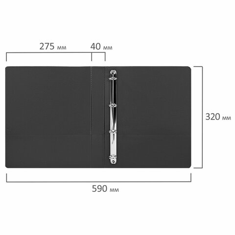 Папка на 4 кольцах, ПРОЧНАЯ, картон/ПВХ, BRAUBERG 'Office', ЧЕРНАЯ, 40 мм, до 250 листов, 271849