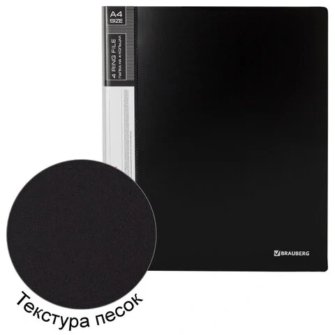 Папка на 4 кольцах, ширина 40 мм, BRAUBERG EXTRA, до 300 листов, ЧЕРНАЯ, 0,8 мм, 270547