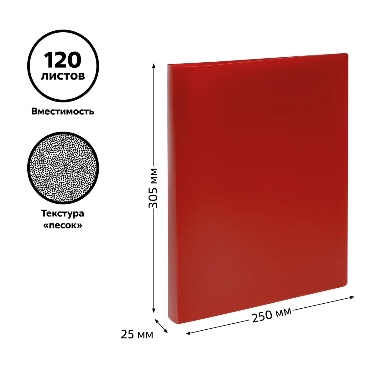Папка на 4 кольцах «СТАММ» предназначена для хранения перфорированных документов формата А4. Цвет папки – красный. Изготовлена из качественного полипропилена плотностью 500 мкм с текстурой «песок». Размер изделия составляет 310*250 мм. Ширина корешка 25 мм позволяет вмещать в папку до 120 листов. Кольцевой механизм, состоящий из 4 колец диаметром 16 мм, надежно держит документы. Папка упакована в индивидуальный пакет.