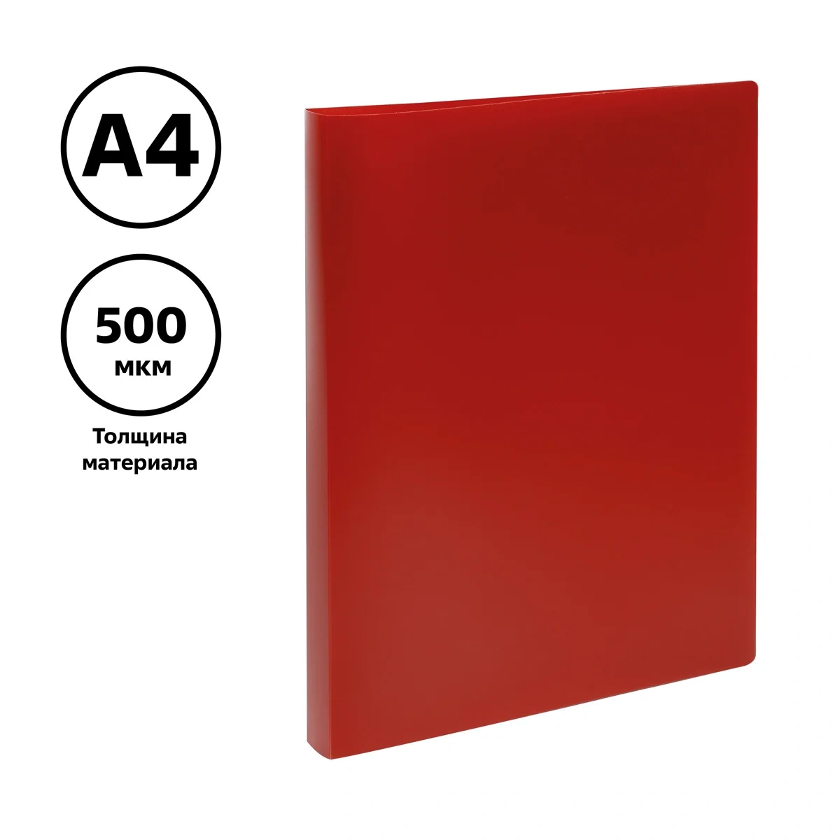 Папка на 4 кольцах СТАММ А4, 25мм, 500мкм, пластик, красная