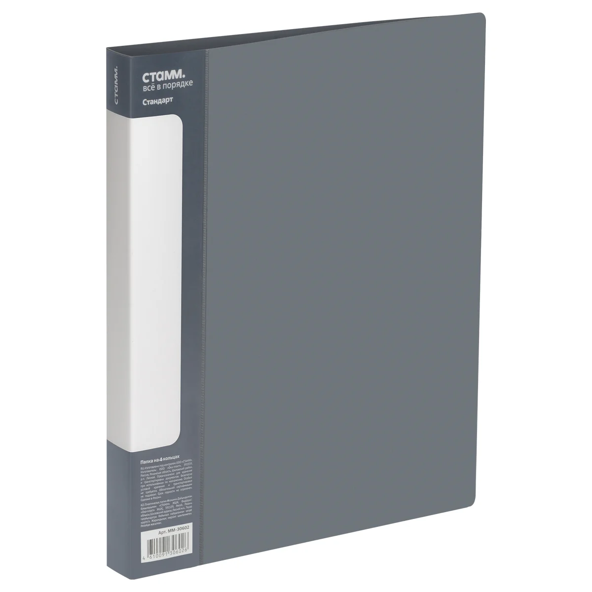 Папка на 4 кольцах СТАММ 'Стандарт' А4, 25мм, 700мкм, пластик, серая