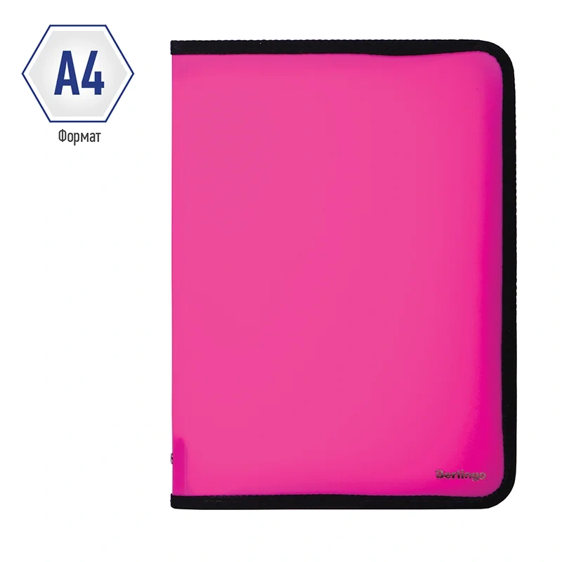 Папка на молнии Berlingo, А4, 500мкм, розовый неон