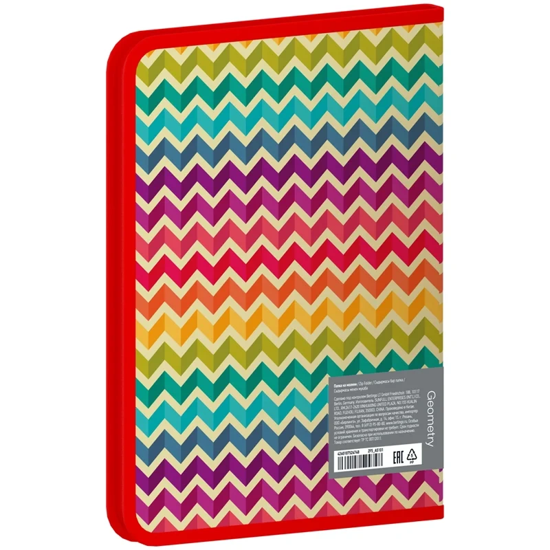 Папка пластиковая на молнии Berlingo серии Geometry формата А5+ станет ярким функциональным помощником для хранения документов со стильным геометрическим рисунком. Изготовлена из высококачественного полипропилена толщиной 600 мкм с матовой текстурой поверхности 'песок', на которой не видно отпечатков пальцев и мелких царапин. Цвет канта – красный. Размер папки составляет 245*200*10 мм., ориентация – вертикальная. Вместимость папки – 200 листов. Надежная молния с мягким ходом защищает документы от повреждений и загрязнений. Молния обеспечит быстрый доступ к содержимому. Индивидуальная упаковка в пакет.