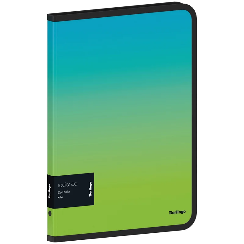 Папка на молнии Berlingo 'Radiance' А4, 600мкм, голубой/зеленый градиент, с рисунком