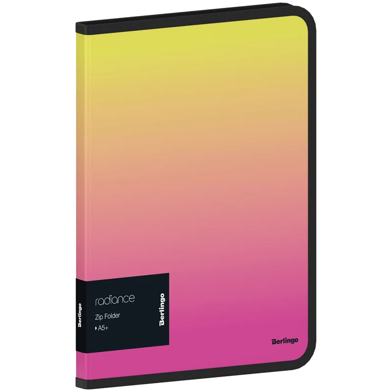 Папка на молнии Berlingo 'Radiance' А5+, 600мкм, желтый/розовый градиент, с рисунком