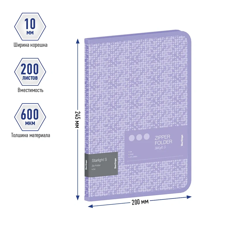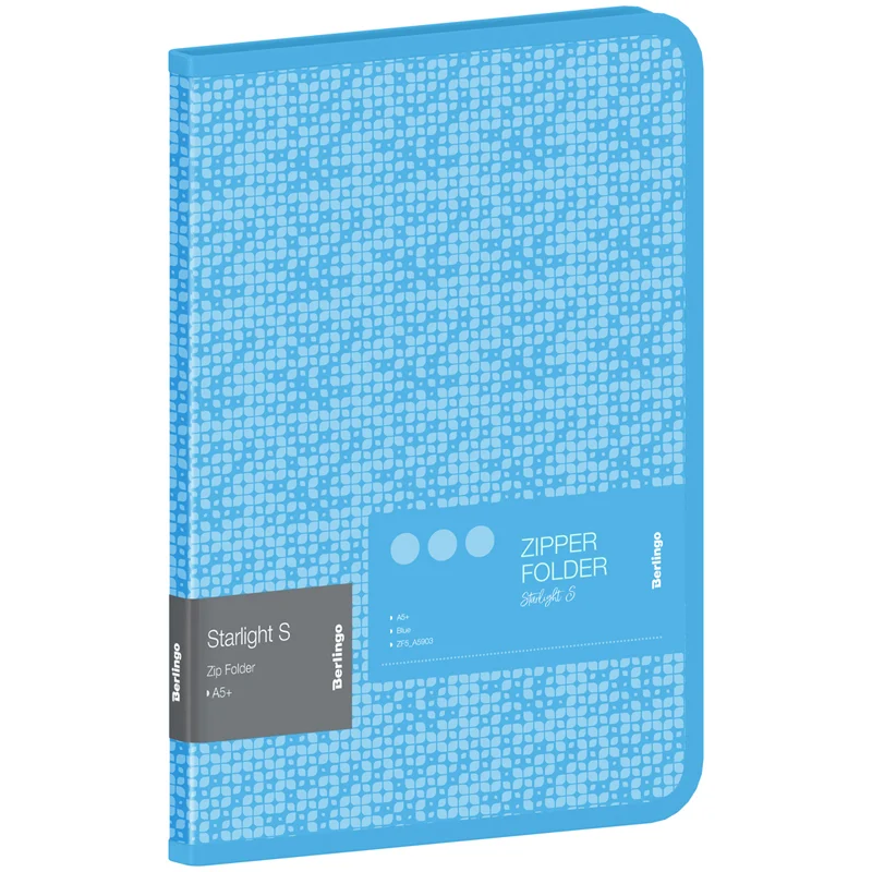 Папка пластиковая на молнии Berlingo 'Starlight S' формата А5+, голубого цвета, полупрозрачная, с рисунком. Надежная молния с мягким ходом. Быстрый доступ к содержимому. Изготовлена из высококачественного полипропилена с матовой текстурой поверхности 'песок', на которой не видно отпечатков пальцев и мелких царапин. Предназначена для хранения и транспортировки документов. Толщина обложки 600мкм. Упакована в индивидуальный прозрачный пакет по форме.