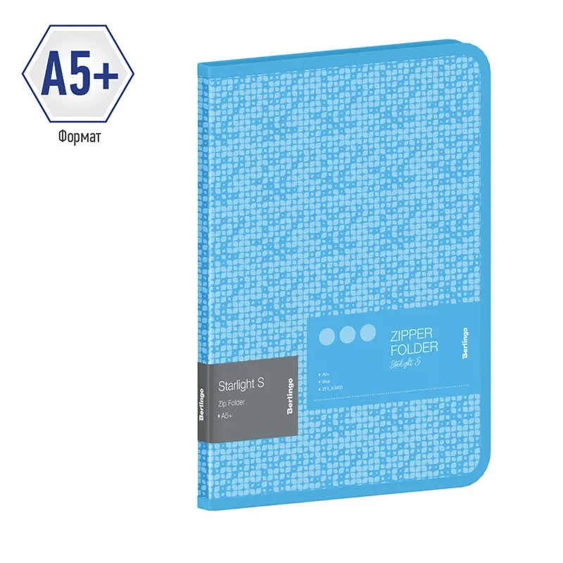 Папка на молнии Berlingo 'Starlight S' А5+, 600мкм, голубая, с рисунком