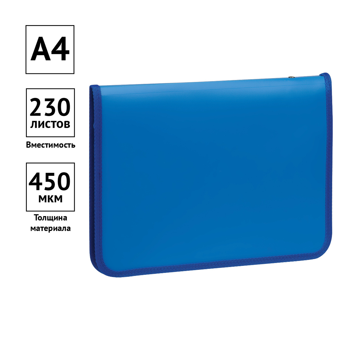 Папка на молнии OfficeSpace А4, 450мкм, пластик, молния вокруг, синяя