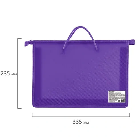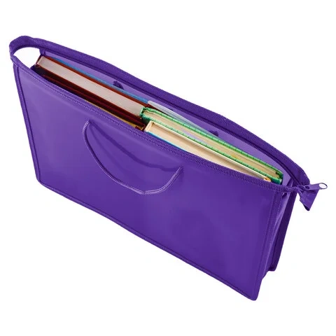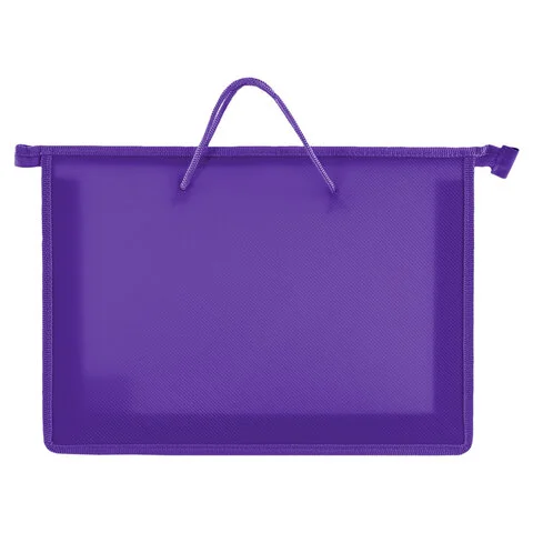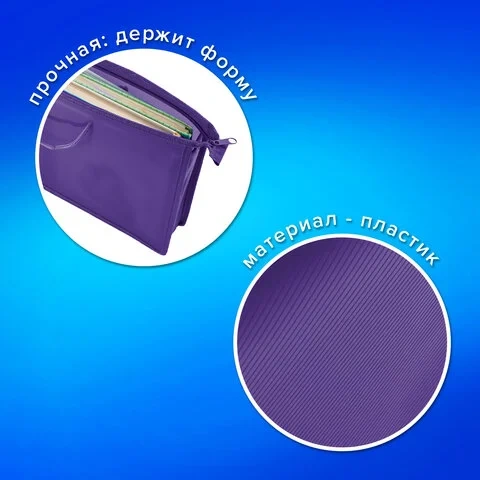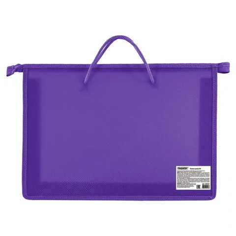 Папка на молнии с ручками ПИФАГОР, А4, пластик, молния сверху, однотонная фиолетовая, 228237
