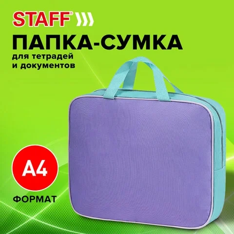 Папка на молнии с ручками STAFF EVERYDAY А4, 1 отделение, полиэстер, 80 мм, лавандовый, 271487