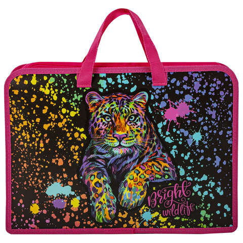 Папка на молнии с ручками ЮНЛАНДИЯ А4, 1 отделение, пластик, ширина 75 мм, 'Bright wildlife', 270953
