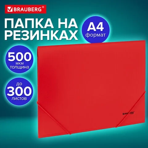 Папка на резинках А4 BRAUBERG UNIVERSAL, красная, до 300 листов, 0,5 мм, 273039