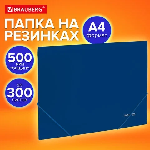 Папка на резинках А4 BRAUBERG UNIVERSAL, синяя, до 300 листов, 0,5 мм, 273037