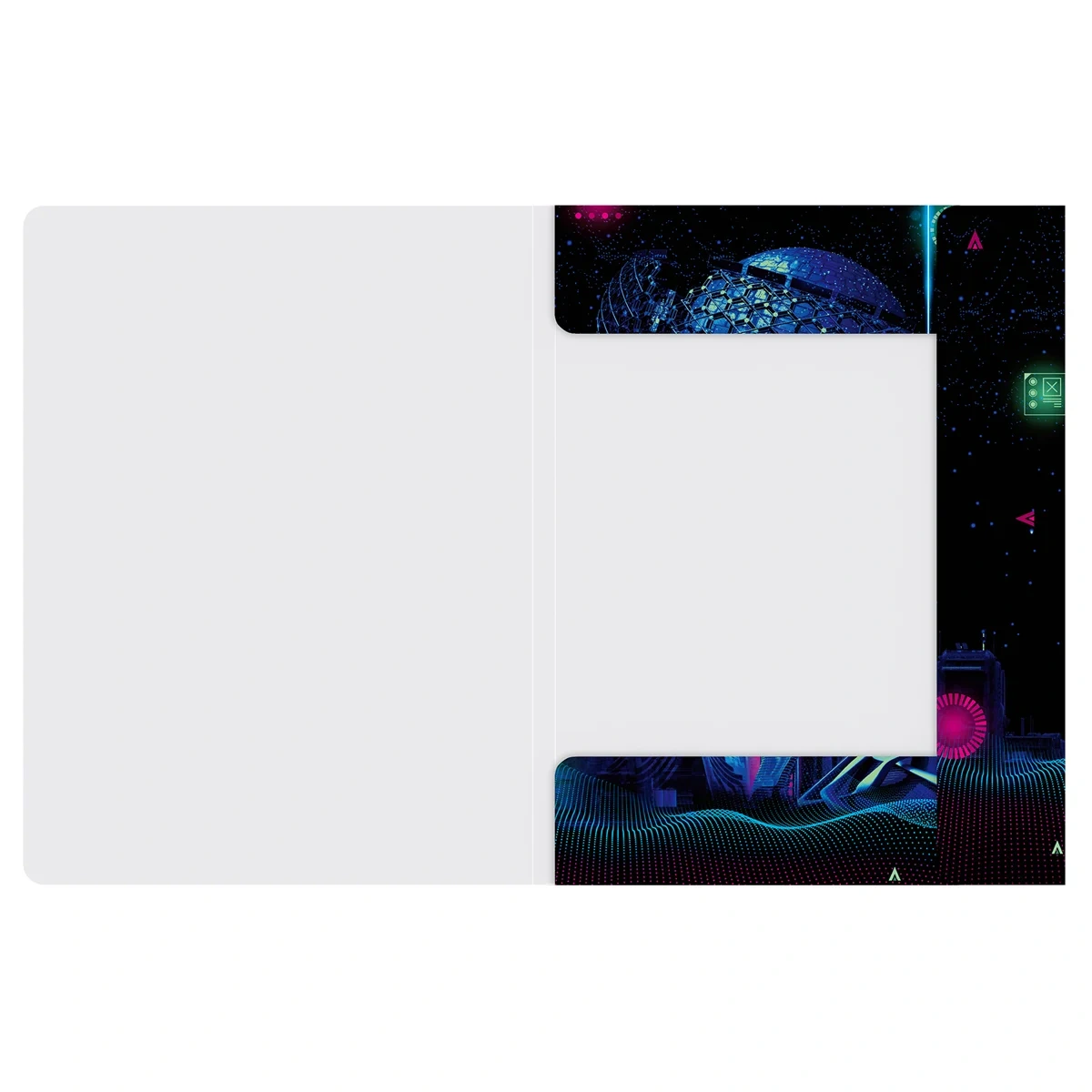 Папка изготовлена из высококачественного полипропилена с матовой текстурой поверхности «песок», на которой не видно отпечатков пальцев и мелких царапин. Толщина обложки 600 мкм. Футуристичный дизайн коллекционной серии Futureal поможет сделать яркий акцент в оформлении рабочего пространства. Внутренняя поверхность выполнена в белом цвете. Надёжные застёжки-резинки помогают избежать повреждения документов и легко открываются. Упакована в индивидуальный прозрачный пакет по форме.