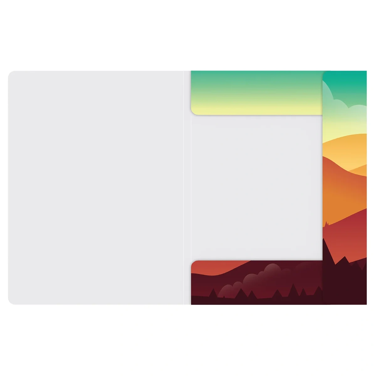 Папка изготовлена из высококачественного полипропилена с матовой текстурой поверхности «песок», на которой не видно отпечатков пальцев и мелких царапин. Толщина обложки 600 мкм. Живописный дизайн коллекционной серии Scenic поможет сделать яркий акцент в оформлении рабочего пространства. Внутренняя поверхность выполнена в белом цвете. Надёжные застёжки-резинки помогают избежать повреждения документов и легко открываются. Упакована в индивидуальный прозрачный пакет по форме.