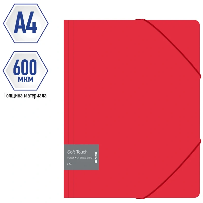 Папка на резинке Berlingo 'Soft Touch' А4, 600мкм, красная